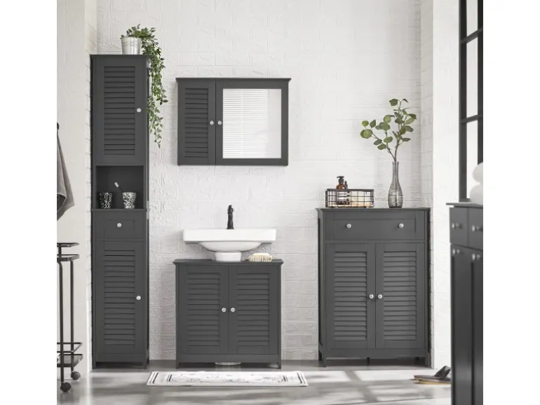 Verstellbare Regalböden: Badezimmerschrank mit einstellbaren Böden für Handtücher, Reinigungsmittel oder Pflegeprodukte – perfekter Stauraum für ein ordentliches Badezimmer.