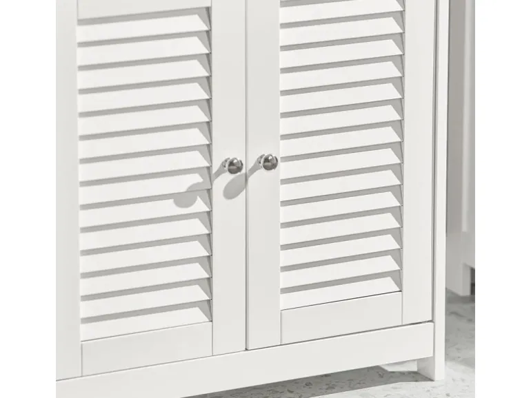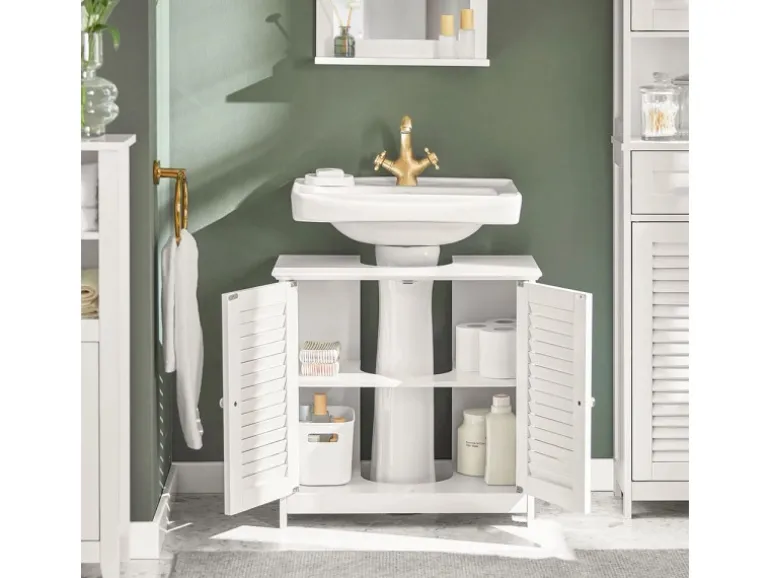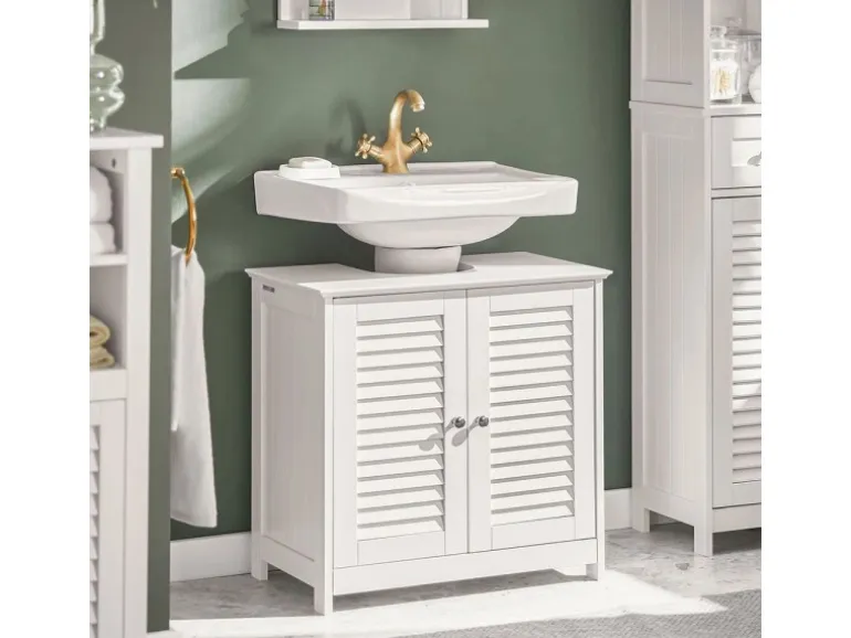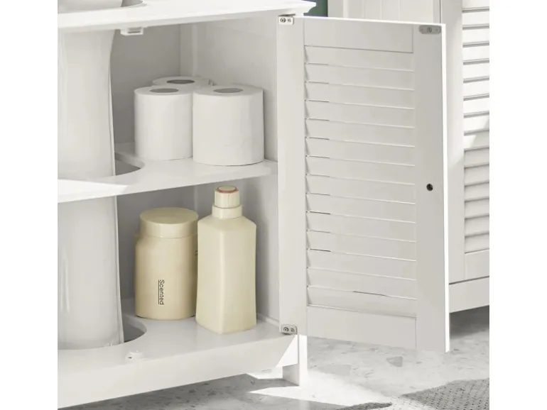 Die Lamellentüren fördern Luftzirkulation, verhindern Feuchtigkeit, Schimmel und Gerüche und verleihen dem Bad einen eleganten, ästhetischen Look.