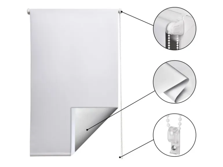 Mit den praktischen und leicht anzubringenden Rollos schaffen Sie blitzschnell und ohne Bohren eine behagliche Wohnatmosphäre in Ihren Räumen. Sol Royal SolReflect T42 Thermorollo VerdunkelungsrolloMit den praktischen und leicht anzubringenden Rollos schaffen Sie blitzschnell und ohne Bohren eine behagliche Wohnatmosphäre in Ihren Räumen.Montage mit oder ohne BohrenDas Sol Royal Thermorollo SolReflect T42 kann mit Bohren, aber auch mittels Klemmfix ohne Bohren an Ihrem Fenster, Ihrer Balkontür oder Terrassentür angebracht werden. Es ist lichtundurchlässig und ideal als Blickschutz, Sonnenschutzrollo oder als Hitzeschutz Rollo für Fenster und Tür.Thermobeschichtung:Das Verdunkelungsrollo hat eine isolierende Thermobeschichtung in Silber und ist zu 100% verdunkelnd. Im Winter blockt das Rollo die kalte Luft von draußen und spart so Heizkosten. Im Sommer wird der Raum durch die Thermobeschichtung abgekühlt.KlemmfixDas Thermorollo lässt sich auch ohne Bohren mittels der im Lieferumfang enthaltenen Klemmträger einfach und schnell anbringen. Sie möchten es lieber an die Wand oder Decke bohren? Das ist durch das mitgelieferte Material ebenfalls kein Problem.Die in der Beschreibung angegebenen Maße entsprechen der Gesamtbreite des Rollos. Die Stoffbreite ist ca. 4 cm schmaler.Mit den praktischen und leicht anzubringenden Rollos, schaffen Sie blitzschnell und ohne Bohren eine behagliche Wohnatmosphäre in Ihren Räumen.Produktdetails:Material: 100% Polyester Geeignet für Falzstärken bis 16 mm Verdunkelungsrollo mit Thermobeschichtung – isolierend und zu 100% verdunkelnd Klemmfix – einfache und schnelle Montage mit Klemmträgern, ganz ohne Bohren und Schrauben Sonnenlicht-Reflexion im Sommer – Abkühlung der Wohnräume Abwischbarer, UV- und feuchtigkeitsbeständiger Stoff Kettenzugmontage links und rechts möglich Kettenzug mit Kindersicherung Bedienung über EndlosketteWarnhinweis:Bitte beachten Sie, dass Kinder sich mit Schnüren und Ketten strangulieren können. Bitte installieren Sie daher das Rollo nicht in der Nähe von Kinderbetten und achten Sie stets auf die Sicherheit Ihres Kindes.