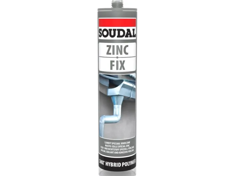 Der Soudal Zinc Fix ist ein Kleb- und Dichtstoff speziell für die Verklebung von Zink auf Zink sowie auf anderen Baumaterialien (z.B. Holz, Stein, Naturstein) oder für die Abdichtung anderer Materialien. Auch geeignet für Abdichtungsarbeiten im Dachbereich.