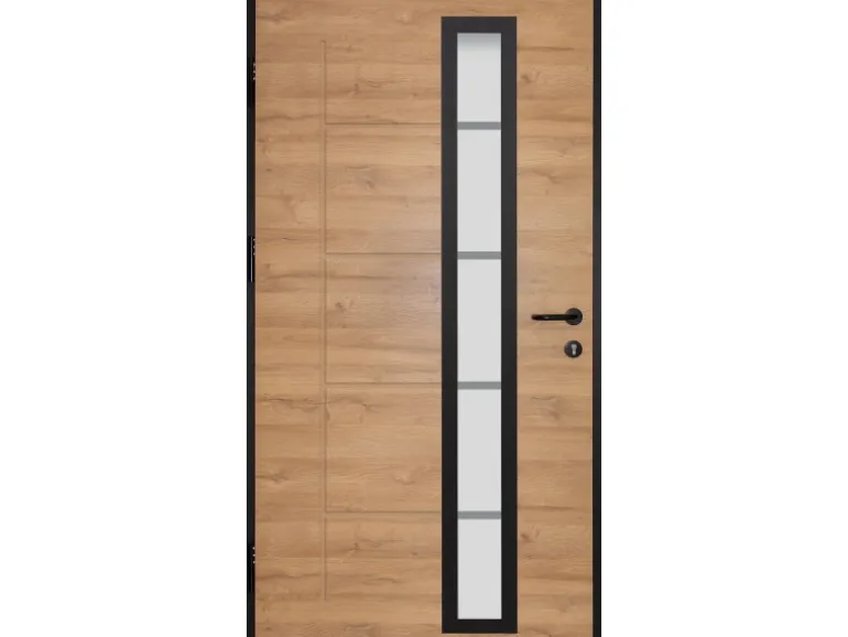 Darüber hinaus dient das Glaselement aus satinierter 3-fach ISO-Verglasung nicht nur der schönen Optik, sondern reduziert ebenfalls Ihre Heizkosten und dient als natürliche Lichtquelle für Ihren Flur. Dank dieser Maßnahmen besitzt die Haustür einen hervorragenden Wärmedämmwert (Ud-Wert) von 0,65 W/m²K, was diese besonders für Niedrigenergiehäuser geeignet macht.