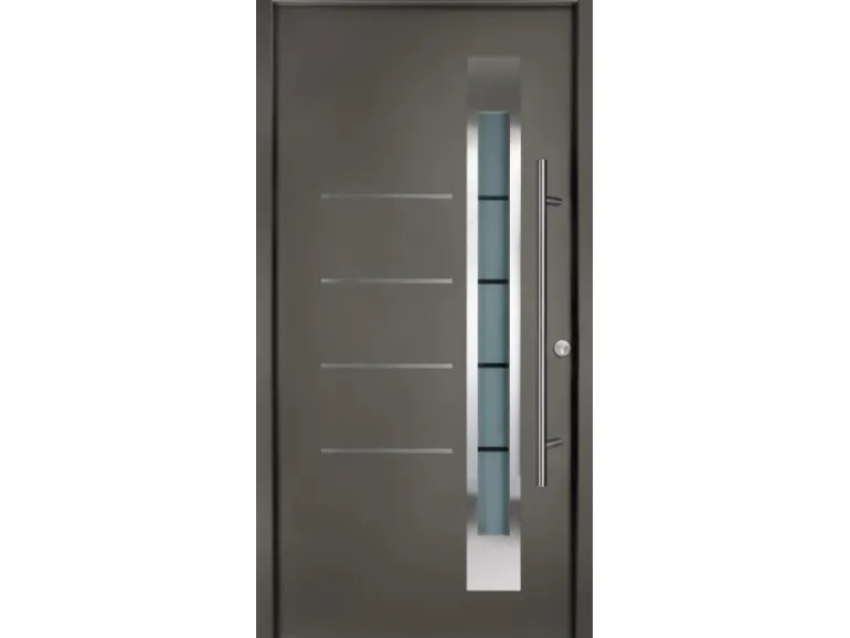 Tief eingelassene Edelstahlapplikation innen und außen mit dem Türblatt flächenbündig