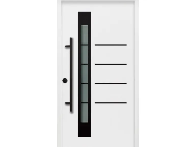 Tief eingelassene Edelstahlapplikation innen und außen mit dem Türblatt flächenbündig
