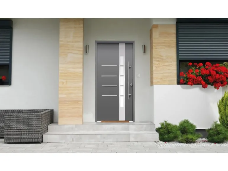 Tief eingelassene Edelstahlapplikation innen und außen mit dem Türblatt flächenbündig