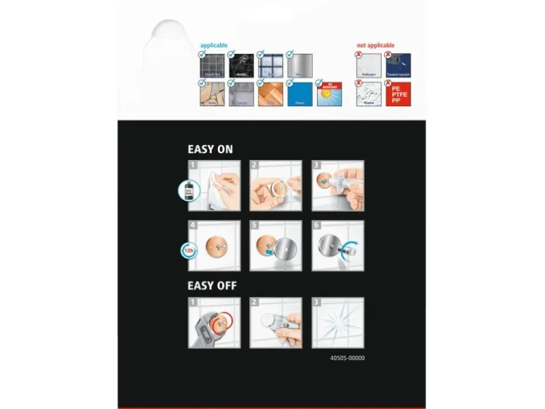 Hält auf Fliesen, Metall, Naturstein, Marmor, Glas, Holz und vielen Kunststoffen