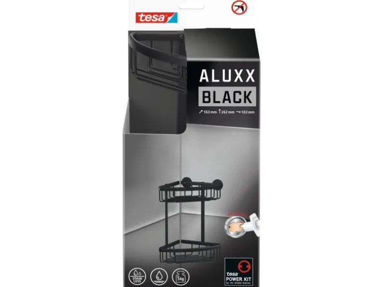 Tesa Aluxx Eckduschkorb zweistöckig Schwarz Matt inkl. Klebelösung