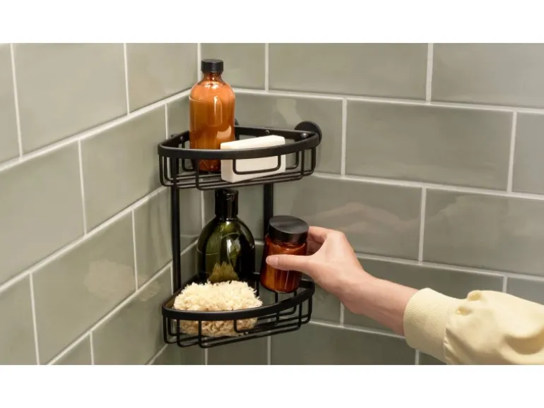 Zweistöckiger Eckduschkorb mit patentierter tesa Power.Kit Befestigungstechnologie