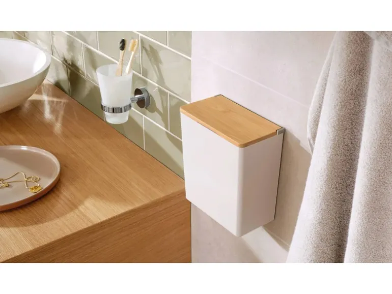 Bequeme und praktische Aufbewahrungslösung für das Badezimmer – einfache Befestigung mit Tesa Powerstrips Waterproof. Kein Bohren notwendig. Die Tesa Baboo Aufbewahrungsbox Large Weiß mit Deckel ist perfekt, um Körperpflege- oder andere Badutensilien ordentlich und organisiert aufzubewahren. Der Behälter besteht aus hochwertigem weißem Kunststoff und hat einen Deckel aus Bambus – ein vielseitiger Look, der zu jedem Badezimmerstil passt. Die mitgelieferten Klebestreifen Tesa Powerstrips Waterpoof XL sorgen für eine wasserfeste Verklebung mit einer max. Haltekraft von 3 kg. Die Streifen lassen sich leicht und rückstandslos entfernen.