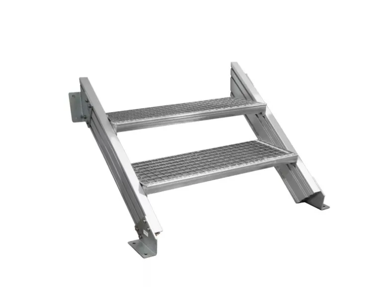 Diese robusten Stufen bieten durch ihr Gitterrostdesign eine hervorragende Rutschfestigkeit, auch bei nassen oder glatten Bedingungen, und sind besonders widerstandsfähig gegen Korrosion. Die Treppe ist so konzipiert, dass sie eine Höhe von 54 cm bis 60 cm erreicht und somit für verschiedene Anwendungen im Außenbereich ideal geeignet ist. Die Alu-Profilwangen sorgen für zusätzliche Stabilität und ermöglichen eine einfache Montage der Treppe.