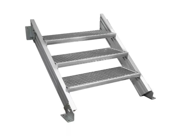 Mit ihrer modernen Bauweise ist die Außentreppe Alaska 3 besonders gut für den Einsatz im Außenbereich geeignet, ob für Balkone, Terrassen oder den Zugang zu höher gelegenen Bereichen. Sie bietet eine langlebige und sichere Lösung, die sowohl funktional als auch optisch ansprechend ist.