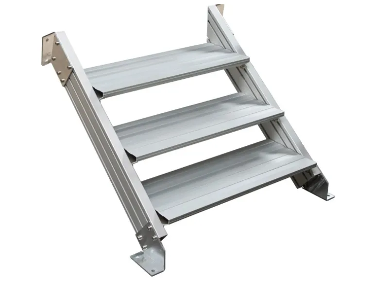 Diese robusten Stufen bieten durch ihrer geriffelten Oberfläche eine hervorragende Rutschfestigkeit, auch bei nassen oder glatten Bedingungen, und sind besonders widerstandsfähig gegen Korrosion. Die Treppe ist so konzipiert, dass sie eine Höhe von 72 cm bis 81 cm erreicht und somit für verschiedene Anwendungen im Außenbereich ideal geeignet ist. Die Alu-Profilwangen sorgen für zusätzliche Stabilität und ermöglichen eine einfache Montage der Treppe.