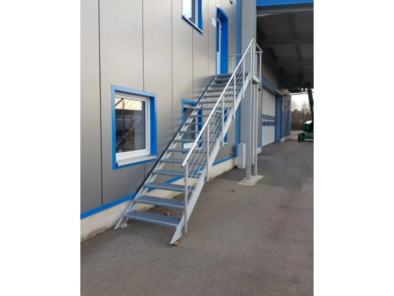 Dank der feuerverzinkten Gitterroststufen und der stabilen Bauweise ist diese Treppe eine ideale Wahl für den Einsatz bei unterschiedlichen Witterungsbedingungen und passt sich perfekt an die jeweilige Geschosshöhe an.