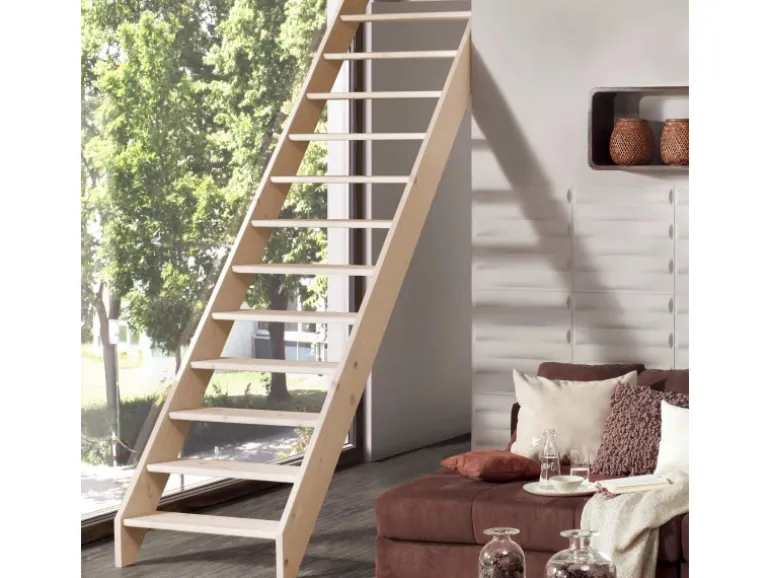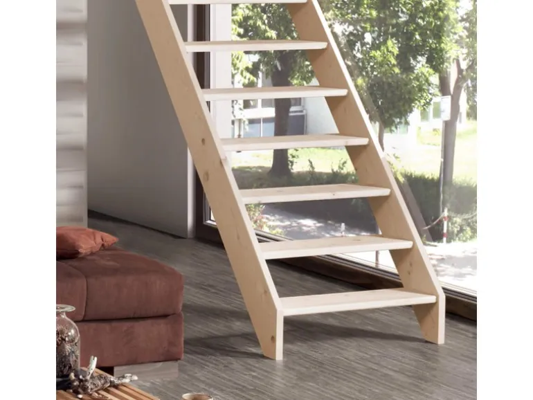 Massivholztreppe mit geradem Verlauf aus Fichte oder Buche in verschiedenen Ausführungen