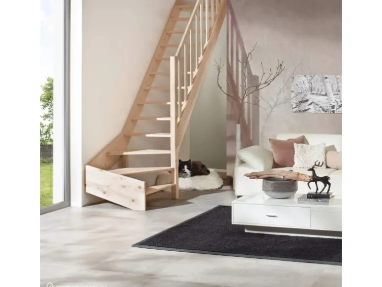 Naturbelassene Treppe, offen für eine eigene Farbgestaltung (Streichen, Ölen, Beizen)