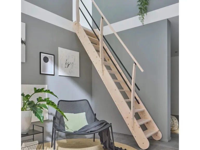 Raumspartreppe aus massivem Leimholz, naturbelassen