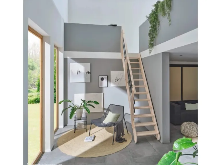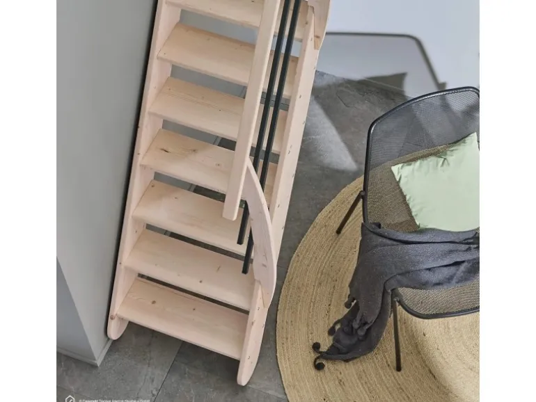 Raumspartreppe aus massivem Leimholz, naturbelassen
