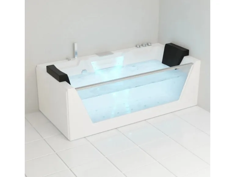 Die Farblichttherapie schafft eine besondere Atmosphäre und wirkt sich positiv auf Ihr Wohlbefinden aus. Dank der hochwertigen Verarbeitung mit Sanitäracryl und verstärkten Glasfasermatten ist diese Whirlpool Badewanne besonders stabil und langlebig. Die Reinigung des Schlauchsystems erfolgt bequem über die Armatur, und die einfache Montage sowie der herkömmliche Schuko-Steckeranschluss machen die Installation problemlos.