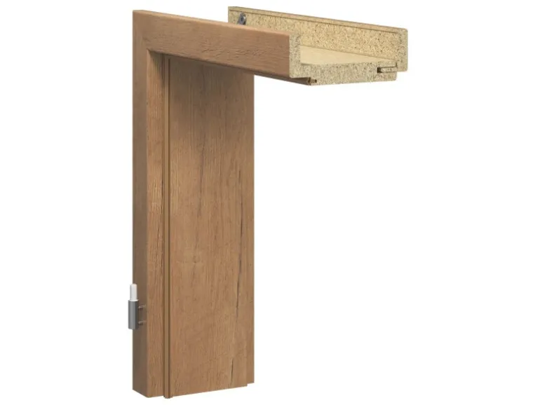 Die Zarge besteht aus einem Futterbrett, dass die Mauer abdeckt mit einer festverleimten Falzbekleidung und einer Zierbekleidung, die nach dem Einbau einen Wandstärkenausgleich von 20 mm ermöglicht. So kann die Zarge die angegebene Wandstärke bedecken. Die lichtechte und pflegeleichte Oberfläche lässt sich mühelos mit einem feuchten Tuch reinigen. Die Zarge ist Links und Rechts-verwendbar.
