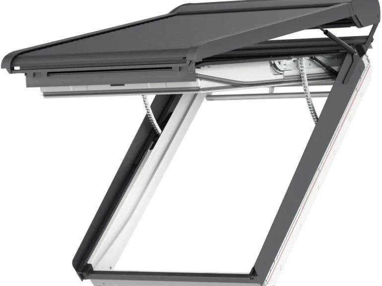 Velux Integra Elektro-Rollladen ist extra für die Velux Integra Elektro-Klapp-Schwing-Fenster GPU entwickelt. Uneingeschränkte Öffnungsfunktion des GPU Fensters bei heruntergelassenem Rollladen. Rundum Schutz durch: wirksamen Hitzeschutz, optimale (fast völlige) Verdunkelung, zusätzliche Wärmedämmung, kompletten Sichtschutz, weniger Lärm, mehr Sicherheit gegen Einbruch. Rollladenpanzer aus ausgeschäumten Aluminiumlamellen in Gummikedern gelagert. Der vorprogrammierte Velux Integra Funk Wandschalter ist im Lieferumfang enthalten. Die Elektrobedienung des Rollladens erfolgt über den Anschluss an ein Velux Integra Elektrofenster GPU. Die Rollläden sind mit homecontrol kompatibel. Antriebsmechanismus mit elektrischer Überlastsicherung. Nennspannung der Motoreinheit 24 V/DC. Die Vollständige Öffnung des Fensters bei heruntergelassenem Rollladen ist möglich.