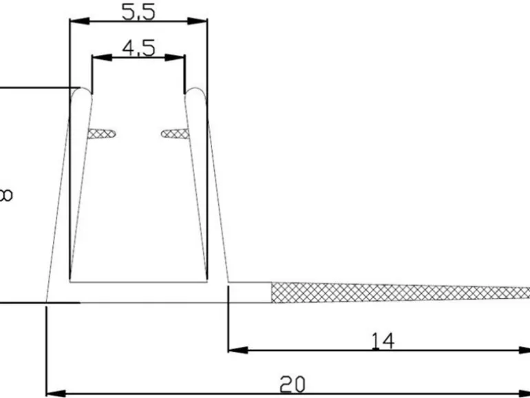 Vertikale Türdichtleisten für Duschkabinen mit 5 mm Glasstärke. Die Dichtleiste hat eine Länge von 1950 mm.