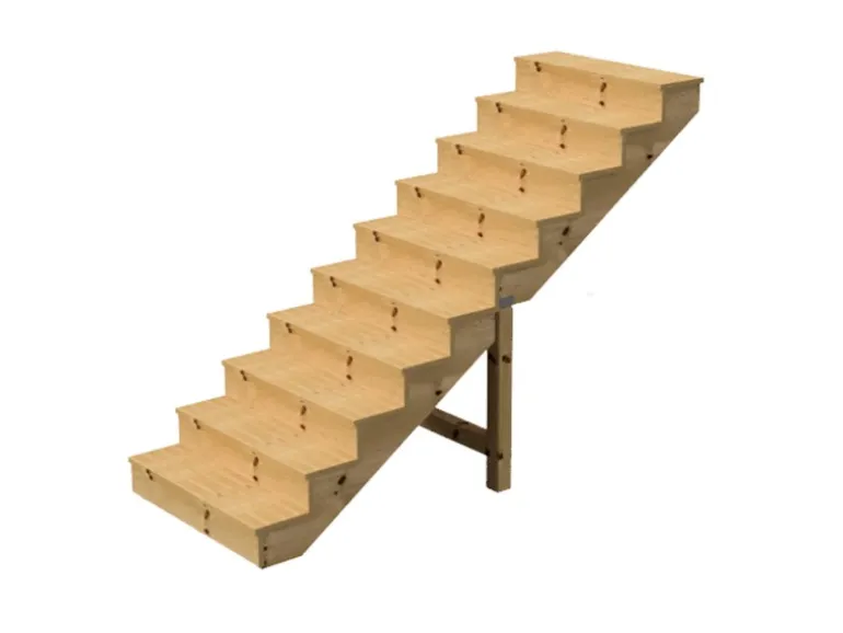 – Der Bausatz für die Außentreppe umfasst: Treppenwangen, Stufenbretter, eine Erweiterungsstütze (inkl. Befestigungsmaterialien) und Edelstahlschrauben.