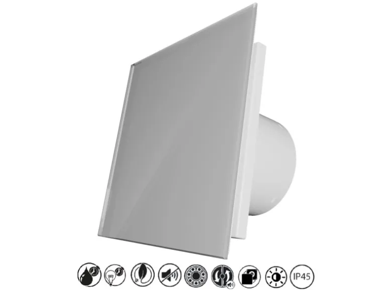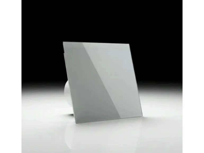 Leiser Badlüfter EOS 100 LTH Silver mit Glasfront für automatische Entlüftung mit Feuchtesteuerung, Lichtsensor und Nachlauffunktion