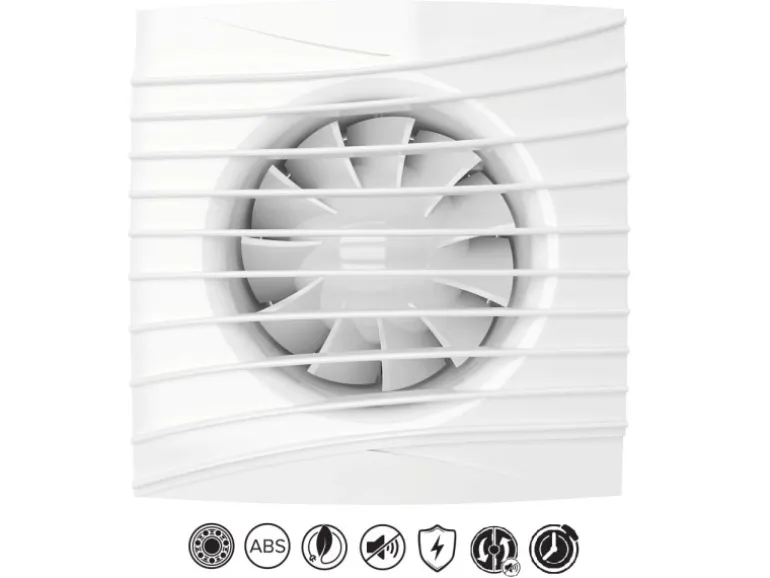 Technische Daten: Einstellbare Nachlauffunktion von 0 bis 30 Min, 220 – 240 V / 50 Hz, 150 mm, 18 / 20 W, 220 / 320 m³/h, 28 /33 dB(A) 3m, IP24, maximaler Druck – 50 / 100 Pa, Überhitzungsschutz. In Räumen mit bis zu +40 °C Umgebungstemperatur verwendbar.