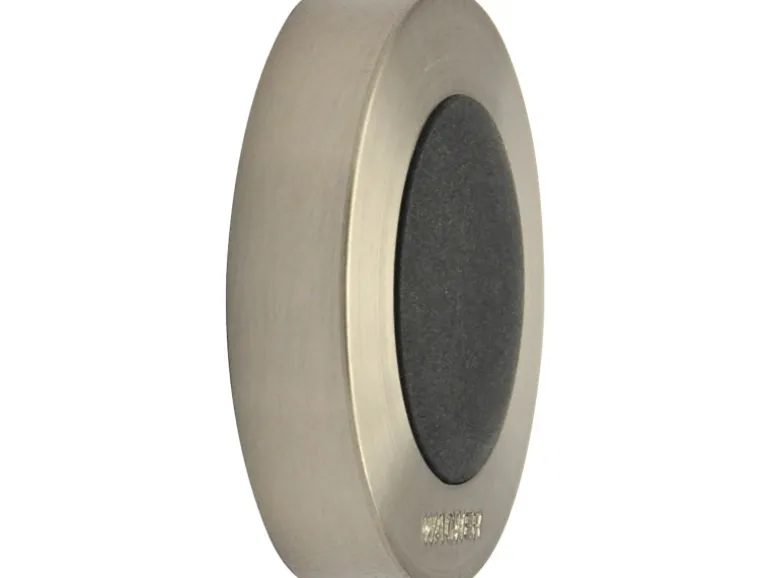 Der Wagner System Türstopper Sog Wall Edelstahl-Optik ist ein Wandtürstopper zum Anschrauben oder Kleben, mit den Maßen: Ø 38 mm, Höhe 10 mm