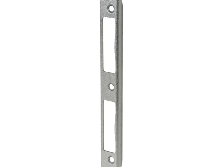 Das Zimmertür Winkelschließblech in Silberfarbig lackiert ist Rechts und Links verwendbar. Die Maße sind 17 cm x 2 cm x 0,8 cm.