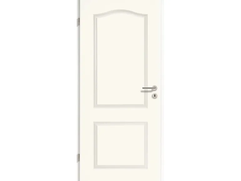 Der Anschlag der Zimmertür befindet sich auf der rechten Seite. Die seidenmatten, weißen Mehrfachlackierungen wirken außergewöhnlich elegant und sind zudem widerstandsfähig gegen Abrieb sowie pflegeleicht.