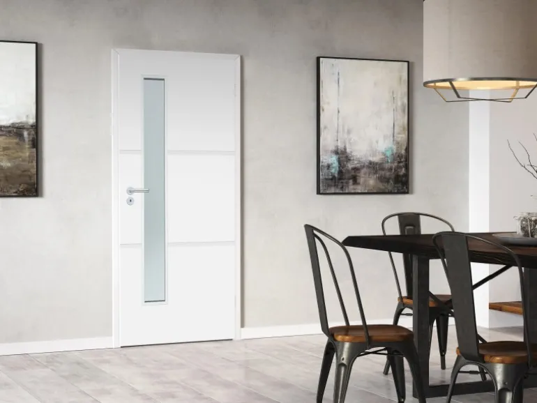Die Zimmertür Portofino ist eine klassisch-moderne Weißlacktür, ähnlich RAL 9016. In Kombination mit der weißen Zarge passt die Portofino Tür zu jedem Wohnstil. Die zeitlose Optik und die moderne Linienführung sorgen in Ihren Räumen für klassische Eleganz. Die mehrschichtige Lackoberfläche wirkt edel und elegant und ist durch den wasserverdünnbaren Schichtlack besonders langlebig.