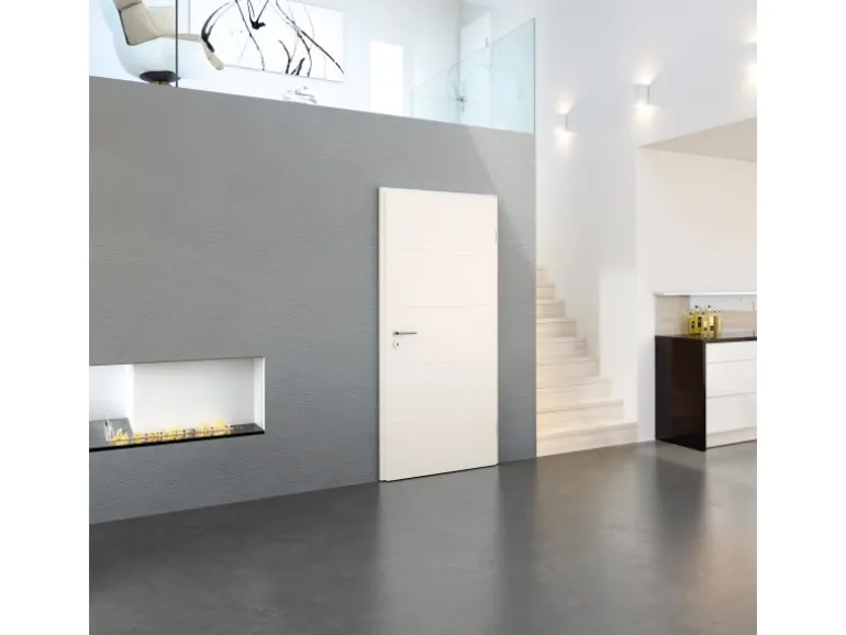 Moderne Zimmertür in Weiß mit horizontalen Dekorlinien